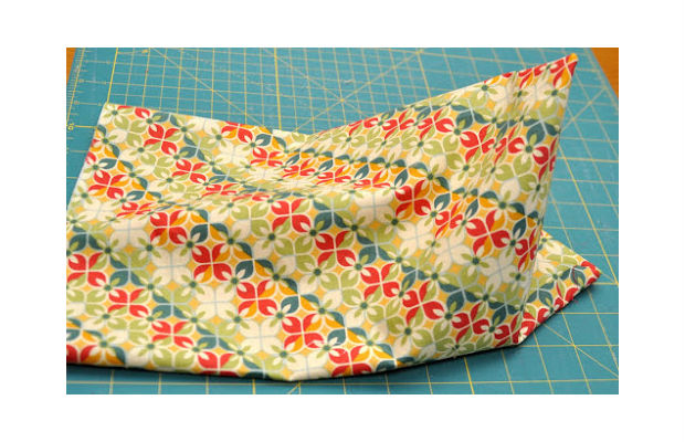 Através da outra ponta, preencha o saco de tecido com o enchimento.
