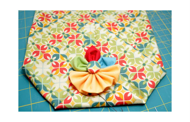 Vire esse quadrado para dentro e cole a flor sobre esse quadrado.